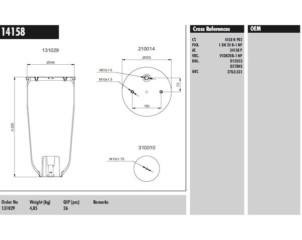 Měch pérování SCHMITZ 4158 bez zvonu