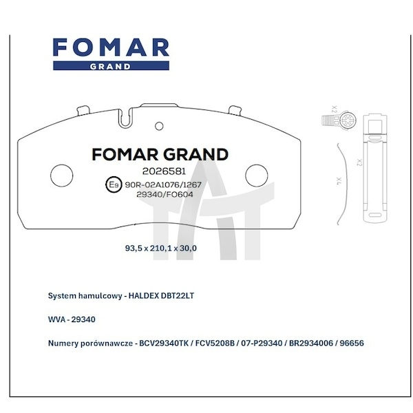 Sada brzdových destiček - kotoučová brzda FOMAR FG2026581