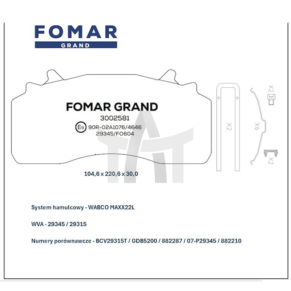 Sada brzdových destiček - kotoučová brzda FOMAR FG3002581